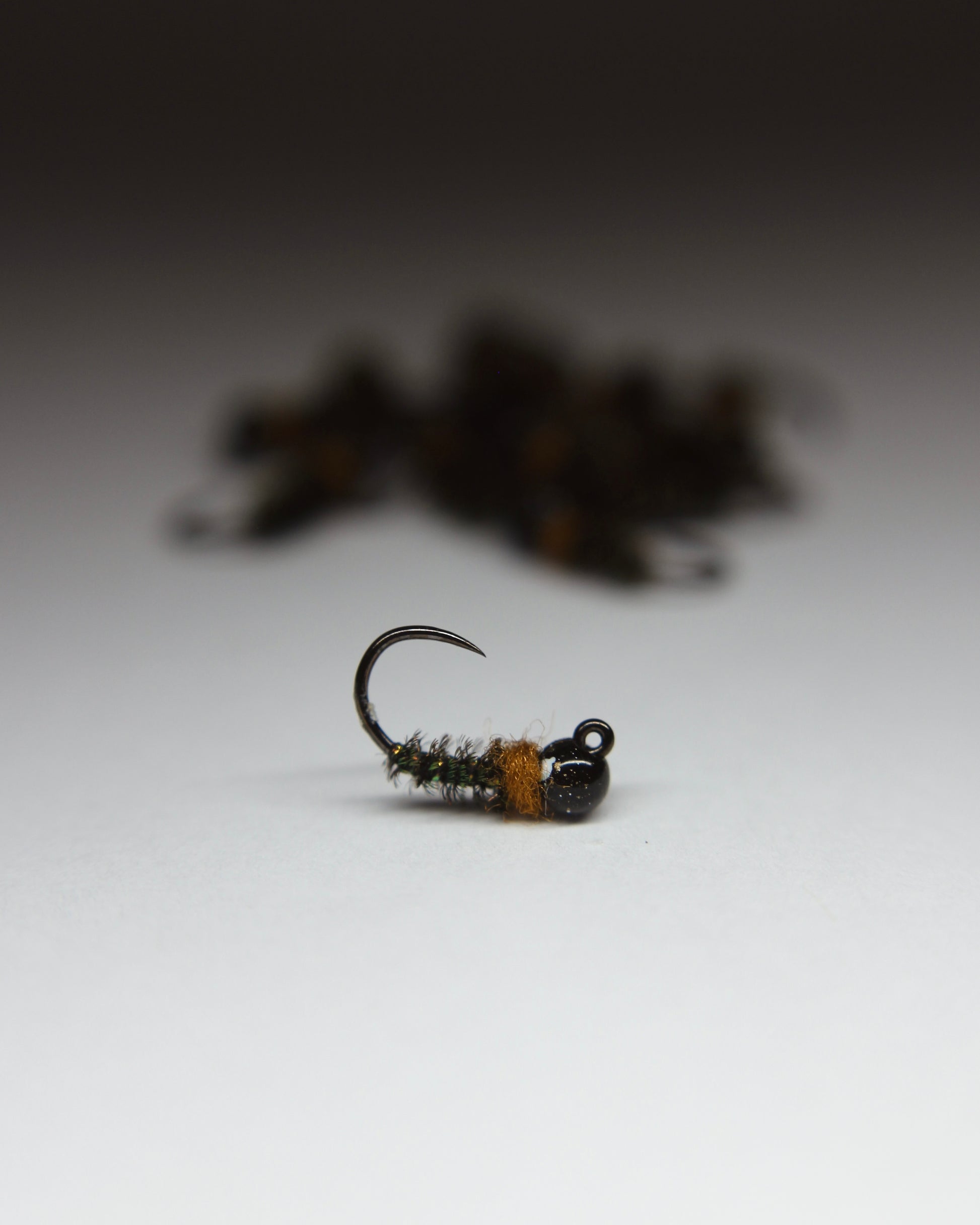 Peacock herl body, with an orange/brown collar. Works best in the tea coloured waters found throughout Nova Scotia.